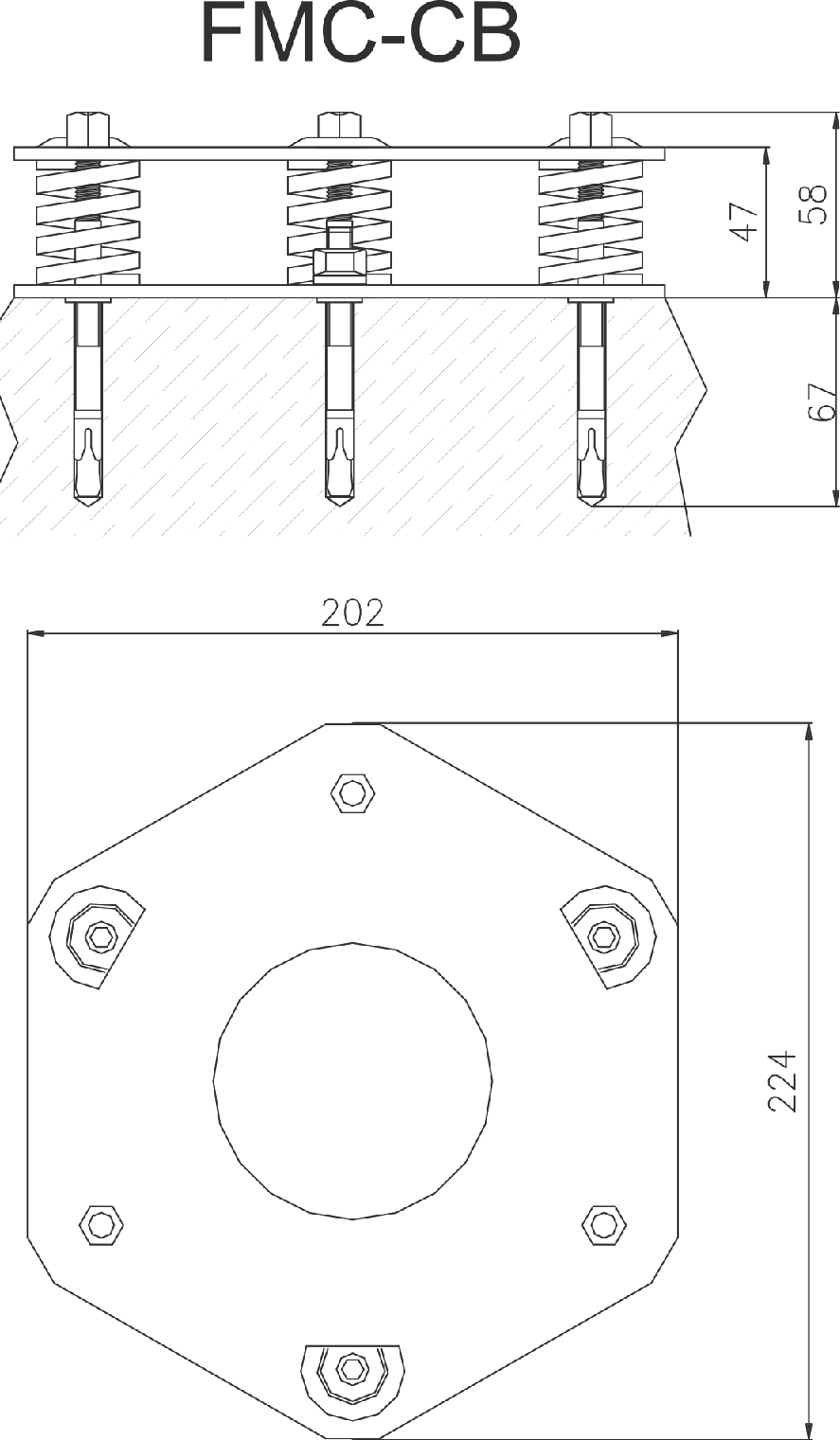 Golvfäste med justerbart fjädersystem för en perfekt injustering av stolpens vertikala axel.